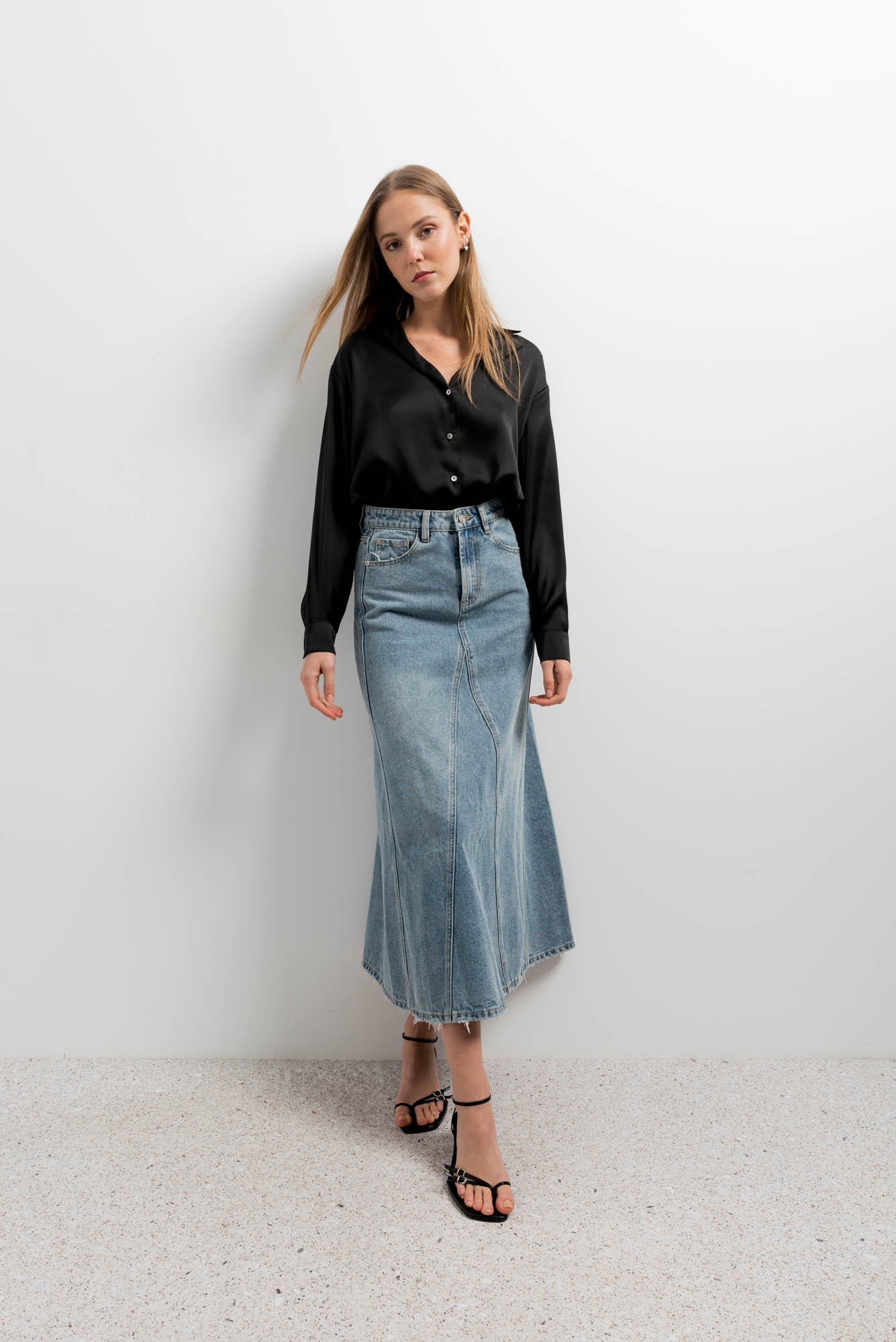 Camisa satinada negra 100% poliester